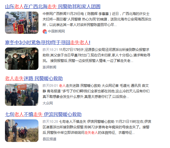 (老人走失相关新闻)